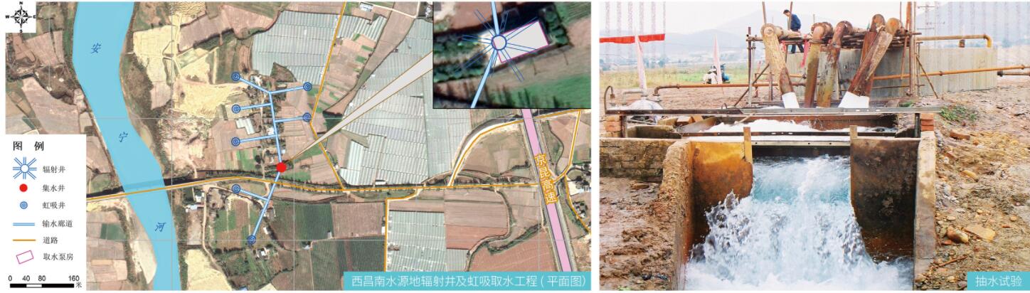 2001年川勘集團(tuán)研發(fā)的“大口徑輻射井+虹吸井取水工藝”建成了取水量為2.6萬(wàn)立方米/日的地下水取水工程,成功解決了成都鐵路局西昌南片區(qū)5萬(wàn)多人的生活用水、站場(chǎng)及列車等生產(chǎn)用水之需,成為大流量開(kāi)發(fā)利用地下水資源的典型成功范例。
