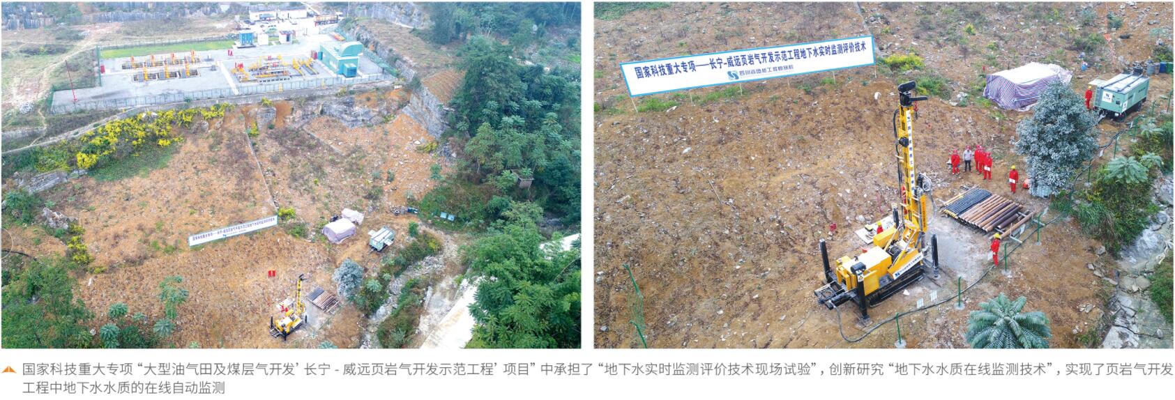 在十三五國家科技重大專項(xiàng)“大型油氣田及煤層氣開發(fā)‘長寧-威遠(yuǎn)頁巖氣開發(fā)工程’項(xiàng)目”中,川勘集團(tuán)承擔(dān)了“地下水實(shí)時監(jiān)測評價技術(shù)現(xiàn)場試驗(yàn)”子項(xiàng)(課題)。為實(shí)現(xiàn)地下水水質(zhì)在線自動監(jiān)測,建立地下水水質(zhì)實(shí)時監(jiān)測評價系統(tǒng),制定頁巖氣鉆井平臺地下水環(huán)境監(jiān)測規(guī)范等科研任務(wù),川勘集團(tuán)通過多年技術(shù)攻關(guān),現(xiàn)建成了集數(shù)據(jù)采集、傳輸、評價、預(yù)警為一體的地下水實(shí)時在線監(jiān)測評價系統(tǒng),填補(bǔ)了頁巖氣開發(fā)全生命周期地下水實(shí)時監(jiān)測預(yù)警的空白,助力打造“經(jīng)濟(jì)、高效、數(shù)字化、綠色”的頁巖氣開發(fā)示范精品工程。