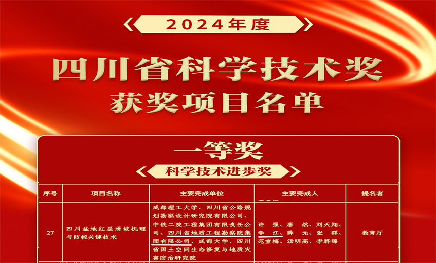 祝賀!川勘集團參研成果獲四川省科學技術進步一等獎