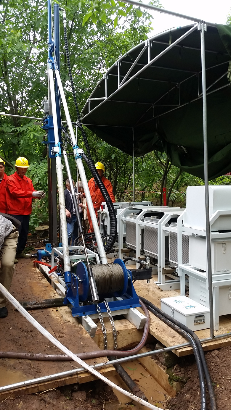 地質(zhì)工程公司總經(jīng)理?xiàng)羁∠蛟侯I(lǐng)導(dǎo)匯報(bào)了項(xiàng)目施工及進(jìn)展情況。據(jù)項(xiàng)目經(jīng)理向明智介紹,龍泉山隧道深孔鉆探是院首次采用ROCK-600型全液壓便攜式鉆機(jī),施工班組及管理人員都是第一次接觸新設(shè)備。該鉆機(jī)最大鉆進(jìn)深度可達(dá)600米,最快日進(jìn)尺可達(dá)90米,能滿足取樣、孔內(nèi)測(cè)試等工作,具有重量輕、易于搬遷、動(dòng)力可調(diào)節(jié)、占地小等優(yōu)點(diǎn)。特別適合在各種惡劣的環(huán)境中優(yōu)質(zhì)、高效、低成本地完成巖芯鉆探工作,在地質(zhì)找礦、前期勘察和鐵路工程勘察中發(fā)揮著重要作用。