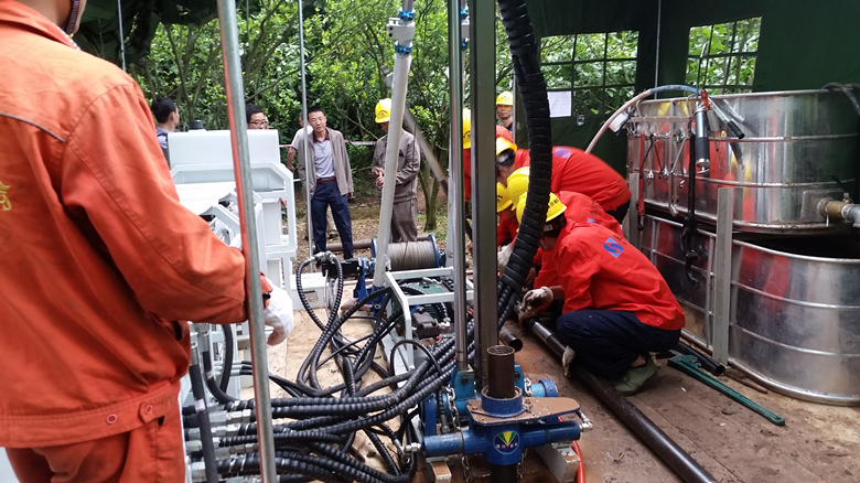 陽(yáng)書記在查看項(xiàng)目現(xiàn)場(chǎng),了解設(shè)備運(yùn)轉(zhuǎn)情況及工人操作后,對(duì)項(xiàng)目作出指導(dǎo):一是該項(xiàng)目是我院在深孔鉆探設(shè)備方面的革新及工藝的改革的試點(diǎn)項(xiàng)目,施工班組和管理人員務(wù)必高度重視,勇于挑戰(zhàn);二是要求項(xiàng)目組人員要在如何使設(shè)備經(jīng)濟(jì)高效的運(yùn)轉(zhuǎn)、發(fā)揮設(shè)備功效上探索研究;三是通過(guò)該項(xiàng)目歷練培養(yǎng)優(yōu)秀操機(jī)手,為今后類似設(shè)備的運(yùn)用儲(chǔ)存技術(shù)力量;四是通過(guò)對(duì)設(shè)備的熟悉、掌握,更加注重科技創(chuàng)新,以節(jié)約成本,推動(dòng)我院在深孔鉆探領(lǐng)域的新發(fā)展。