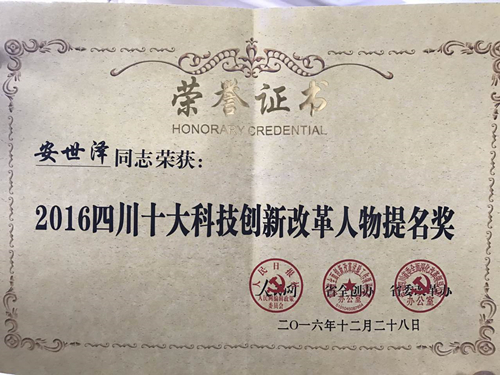 1月24日,“2016四川十大改革轉(zhuǎn)型發(fā)展案例暨十大科技創(chuàng)新改革人物”頒獎晚會在綿陽召開。我院院長安世澤榮獲“2016四川十大科技創(chuàng)新改革人物”提名獎,并出席了當晚的頒獎典禮。