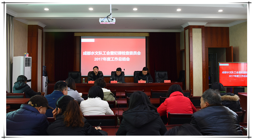 隊紀委書記、工會主席廖華成首先對水文隊2017年工會工作進行了詳細總結(jié),并對2018年工作開展做了周密的部署安排。廖書記著重圍繞黨風廉政建設(shè)和加強二級實體的民主管理等內(nèi)容,對各分工會、紀委工作開展提出了要求。