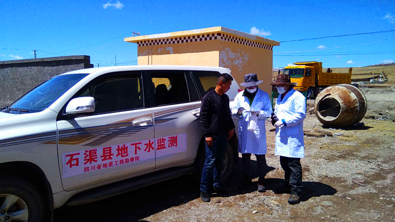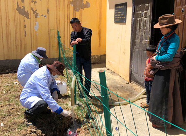 4月18日,項目組人員翻山越嶺,到達(dá)了位于海拔4300m的石渠縣城,開展石渠縣地下水監(jiān)測工作。換上白大褂,戴上口罩和乳膠手套,項目組人員對縣城周邊包蟲病防治地下水取水井進(jìn)行了全面的檢查和了解,做好相關(guān)調(diào)查記錄,并對典型井點(diǎn)進(jìn)行了采樣工作,為石渠縣包蟲病區(qū)廣大人民群眾安全飲水保駕護(hù)航。