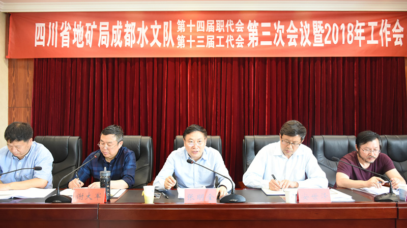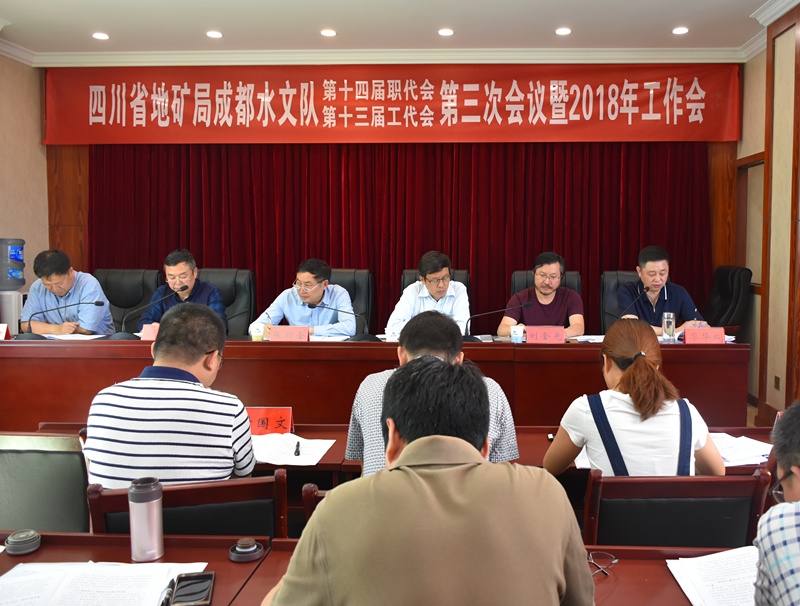 4月28日,四川省地礦局成都水文隊第十四屆職工代表大會第三次會議(以下簡稱職代會)、第十三屆工代會第三次會議(以下簡稱工代會)于2018年4月28日在隊部副樓五樓會議室召開,來自全隊各部門、各實體的職工代表正式代表、列席代表共90余人參加了會議。局黨委常委、副局長張明全、四川省地質(zhì)工會副主席劉金光、局規(guī)劃發(fā)展處副處長周曉耀出席會議。會議由隊黨委書記謝大軍主持。