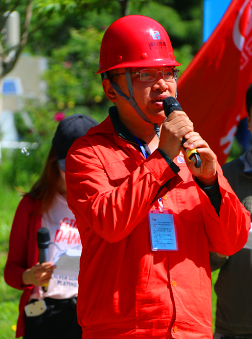 項目部現(xiàn)場總協(xié)調(diào)人陳新代表參加演練的施工單位發(fā)言