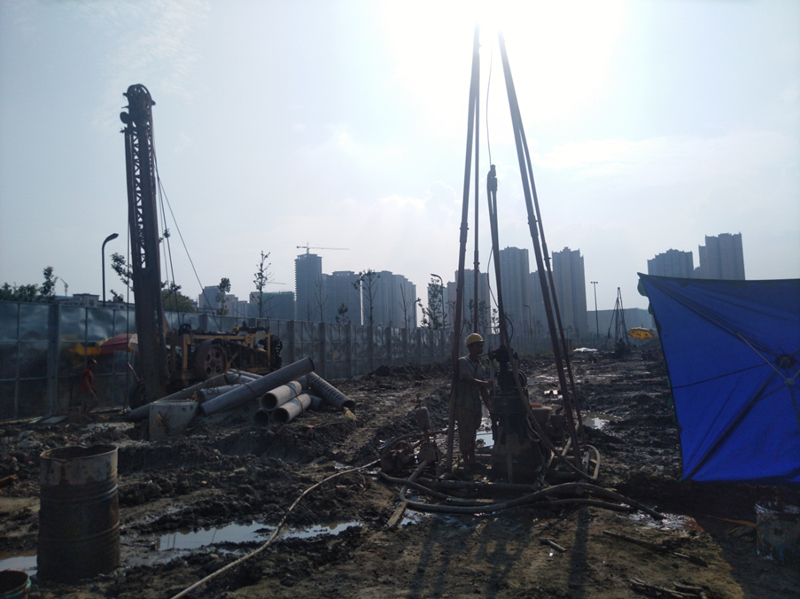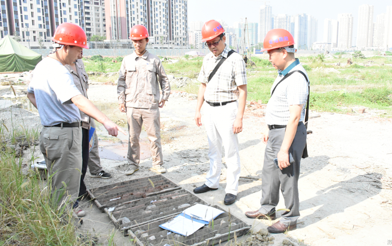 為確?!叭A府279 項目”巖土勘察的順利完成,及時向建設(shè)單位、設(shè)計單位、有關(guān)施工單位提供全面的、可靠的、科學(xué)的勘察成果,我院水文地質(zhì)工程公司先后選派五名高級工程師和其他現(xiàn)場管理、地質(zhì)技術(shù)人員組成項目組駐扎現(xiàn)場,克服工期緊、高溫暴雨以及鉆機荒等各種因素的影響,加班加點趕進度;院長安世澤、院黨委書記謝大軍以及水文地質(zhì)工程公司領(lǐng)導(dǎo)、技術(shù)顧問、生產(chǎn)管理部門人員等先后前往項目一線慰問作業(yè)人員并進行指導(dǎo),全力協(xié)助項目部解決施工過程中遇到的具體問題。