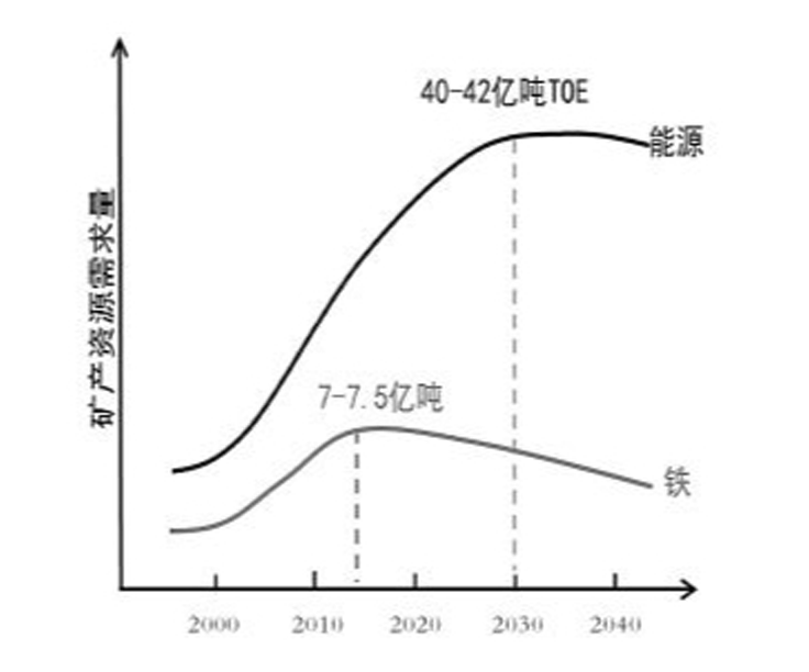 王安建教授介紹,中國進(jìn)入工業(yè)化中期轉(zhuǎn)型調(diào)整期,重要大宗礦產(chǎn)資源需求還在緩慢增長, 將在2025年前后陸續(xù)達(dá)到頂點(diǎn)。盡管資源需求增速放緩,但是資源需求仍將處于高位運(yùn)行,資源需求總量仍然巨大。