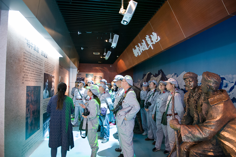 培訓(xùn)期間,隊伍打紅旗,學(xué)員穿紅軍服、戴紅軍帽、背紅軍包、纏綁腿、系皮帶、戴?;?,出行列隊整齊有序,成為一支紅色勁旅。學(xué)員們通過“吃紅軍飯、唱紅軍歌、走紅軍路”的培訓(xùn)形式,經(jīng)過長征歷史理論教學(xué)、參觀馬爾康紅軍長征紀(jì)念館現(xiàn)場教學(xué)、過草地穿越日干喬大沼澤體驗教學(xué),學(xué)習(xí)紅軍隊伍的堅強斗志,體驗紅軍長征中的艱難困苦。